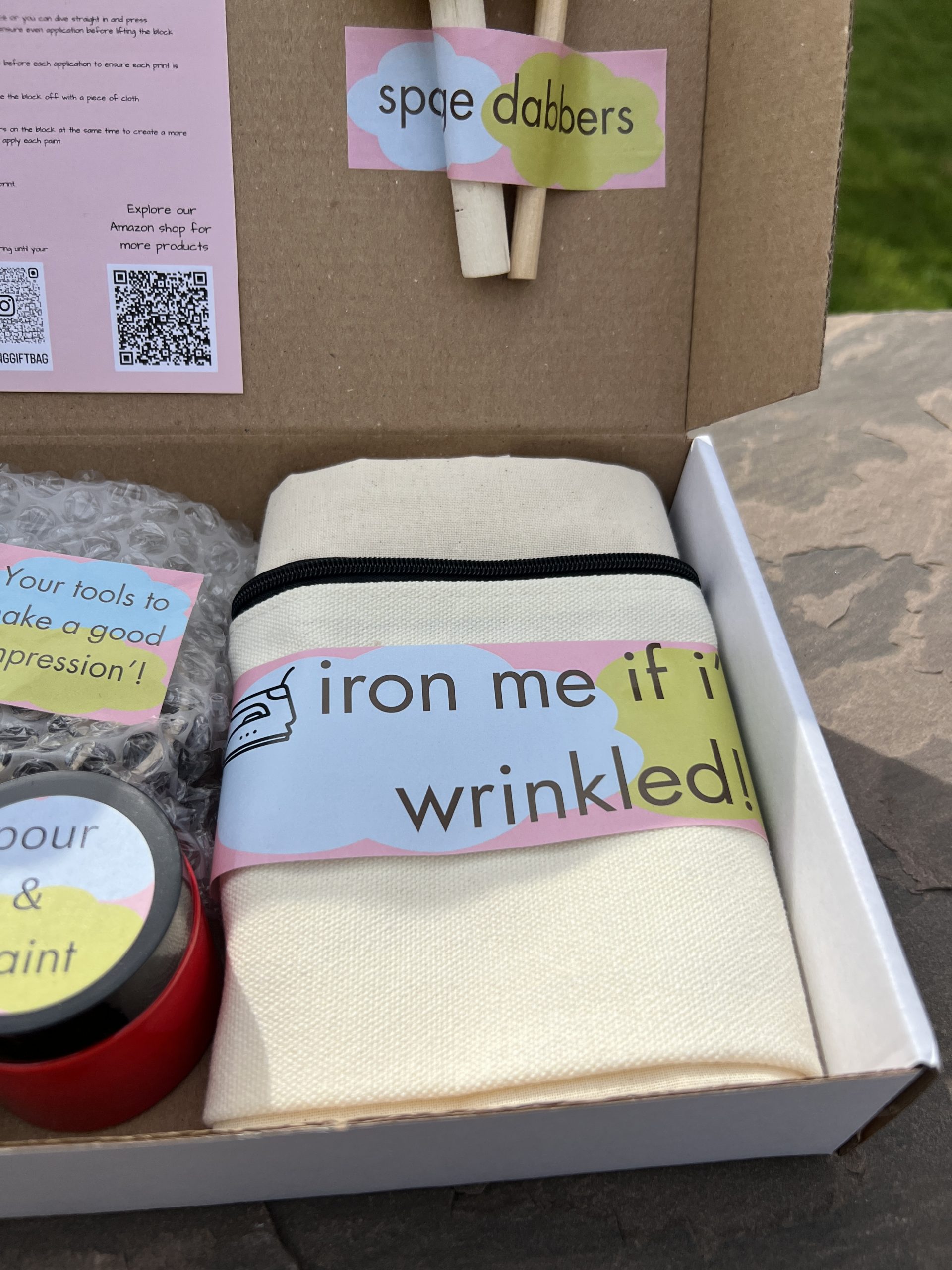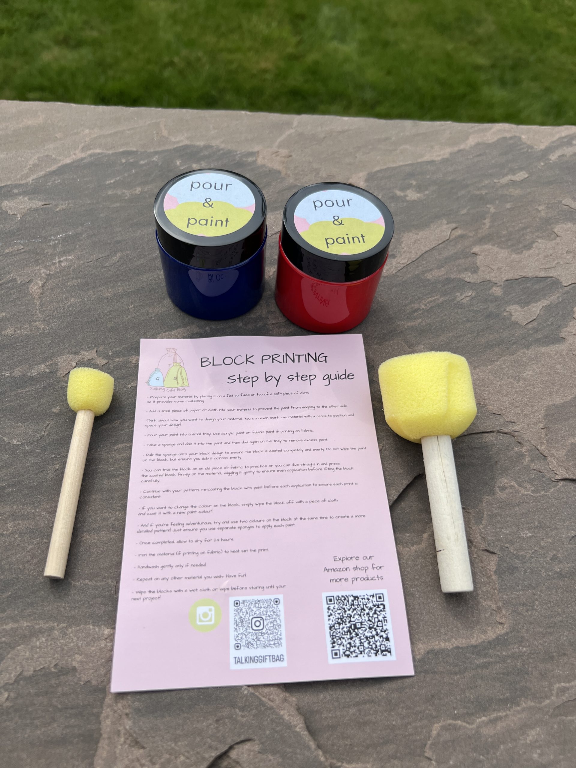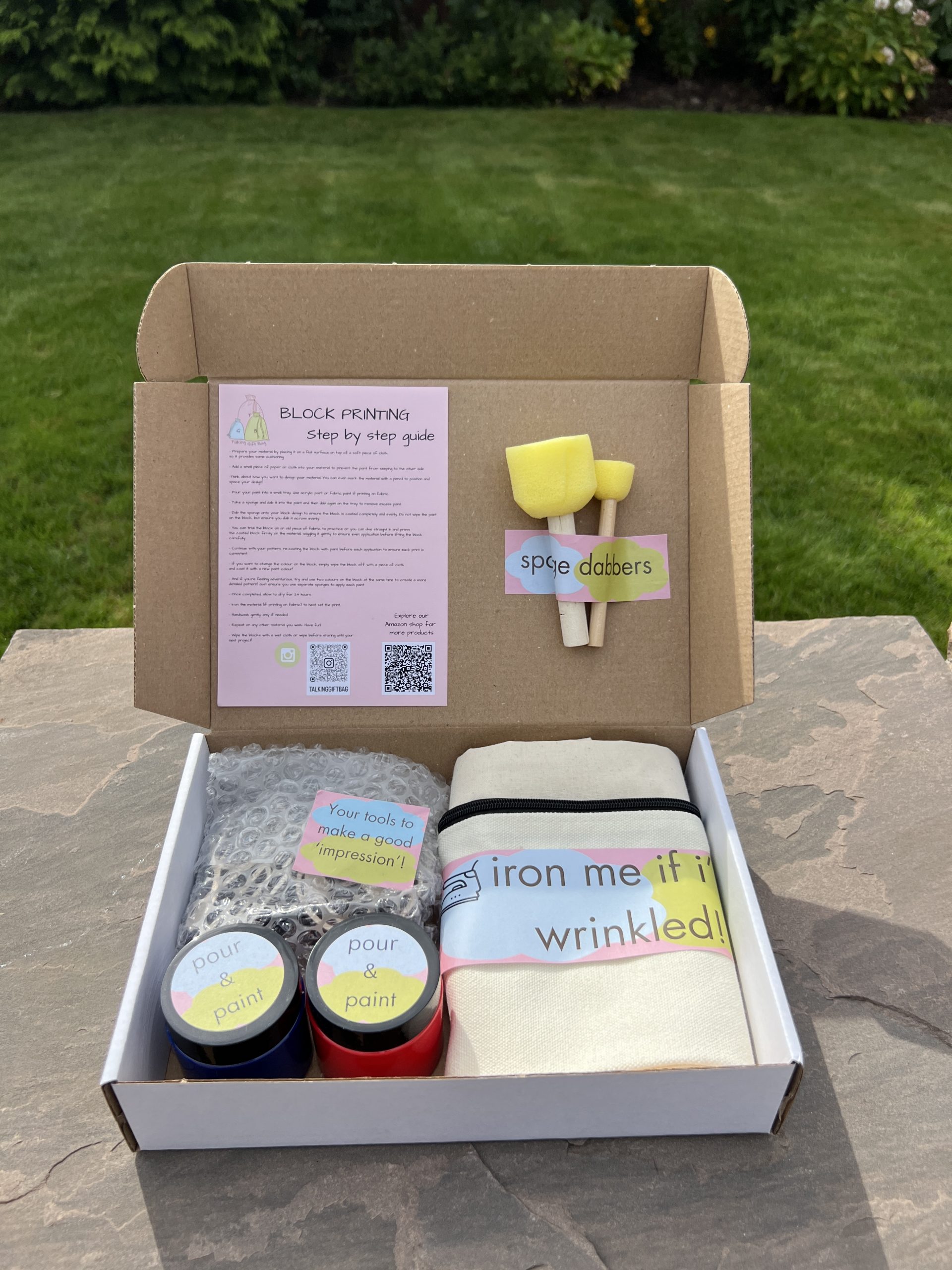 Unleash your creative energy and create some unique and fun block printed bags- use the bags as gift for a loved one- or keep them for yourself!